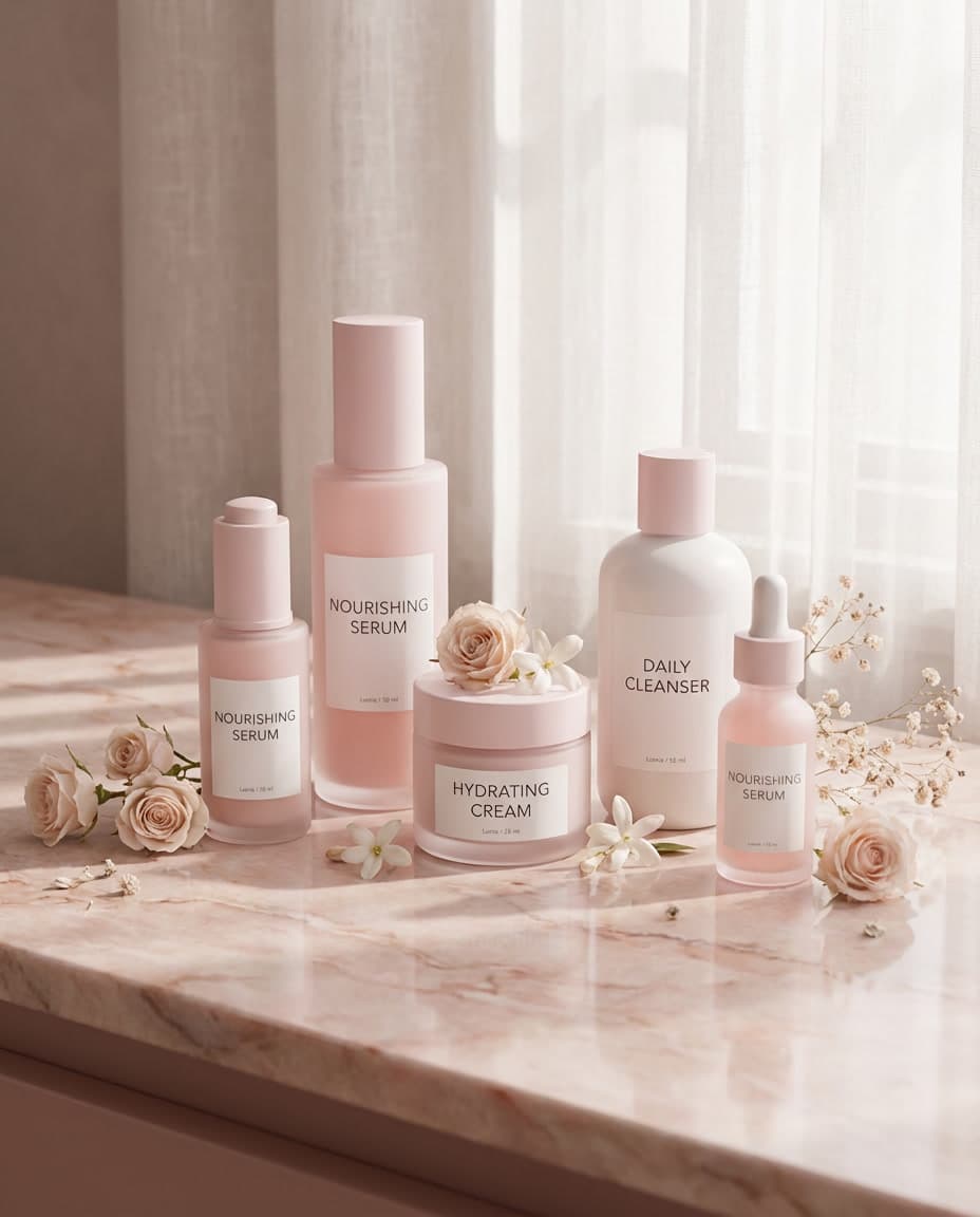 Builds trust for skincare and beauty. Uses subtle design to match premium product positioning.